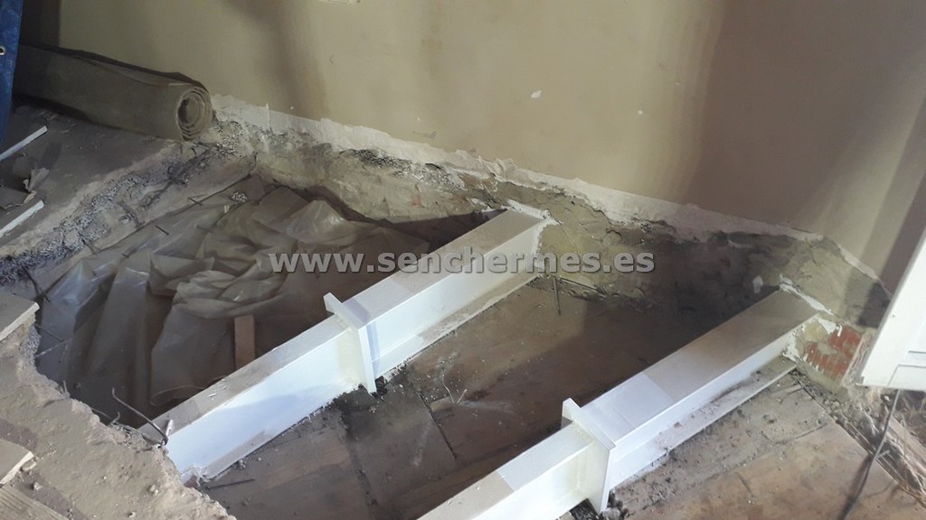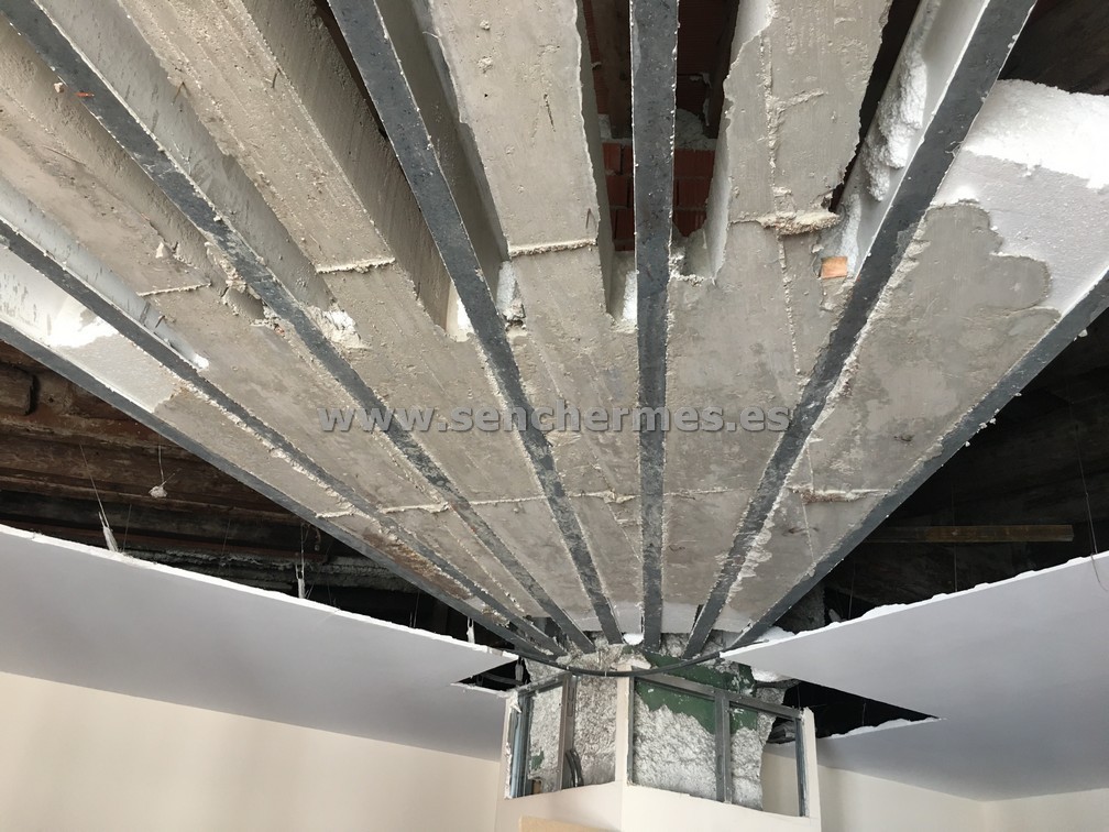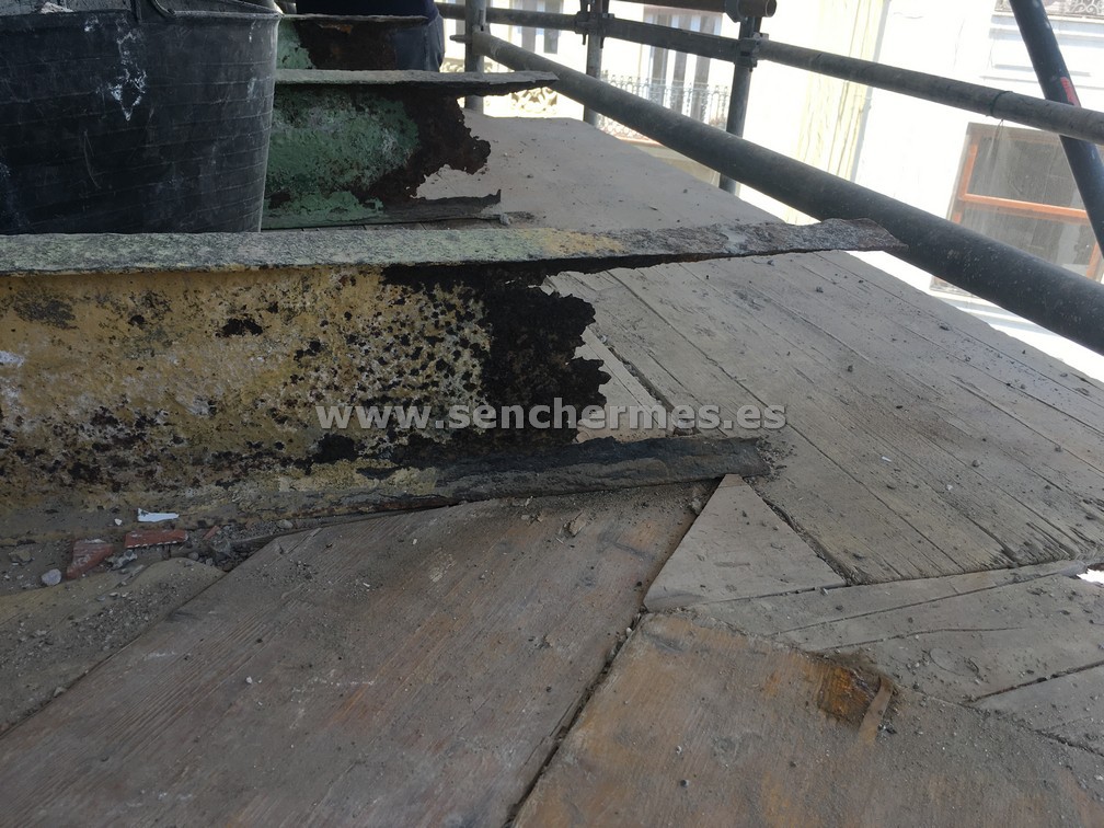 Proceso de sustitución de las partes dañadas de las viguetas metálicas que conforman el voladizo