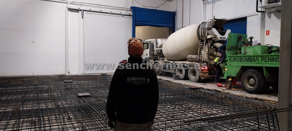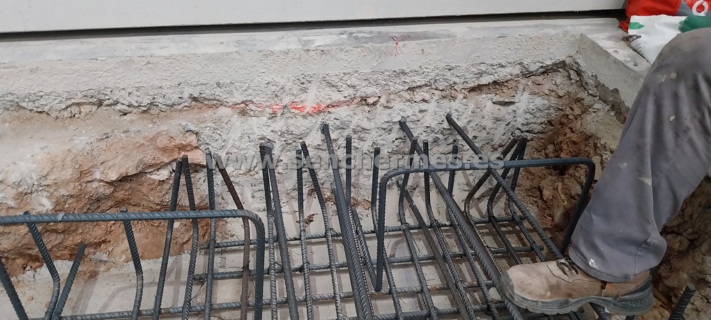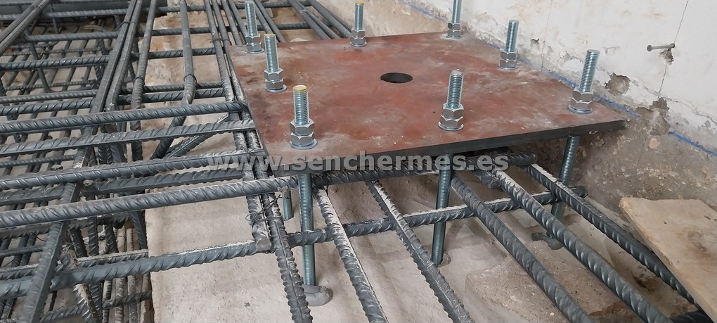 Excavación, armado y hormigonado de losa de hormigón con placas de anclaje.