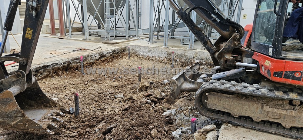 Perforación y ejecución de los micropilotes autoperforantes Titan. Ejecución de losa de hormigón armado.