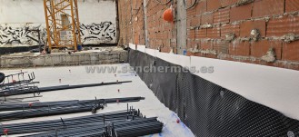 Krystaline, y manta de bentonita, muros de hormigón armado para semisótano impermeabilizado. Estructura de hormigón armado con forjados de semivigueta y bovedilla de hormigón.