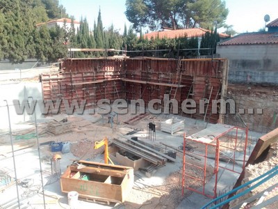 Vistas del encofrado y de la apartura de huecos en muro de sótano