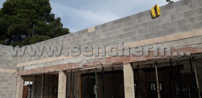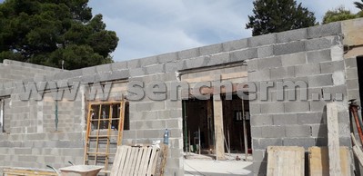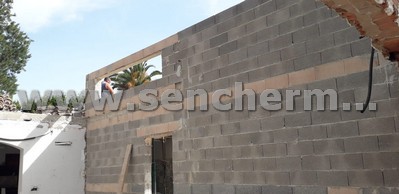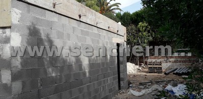 Vista de los muros de bloque estructural, con dinteles para los huecos.
