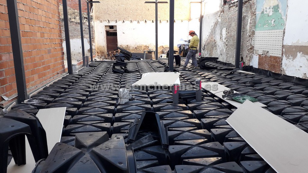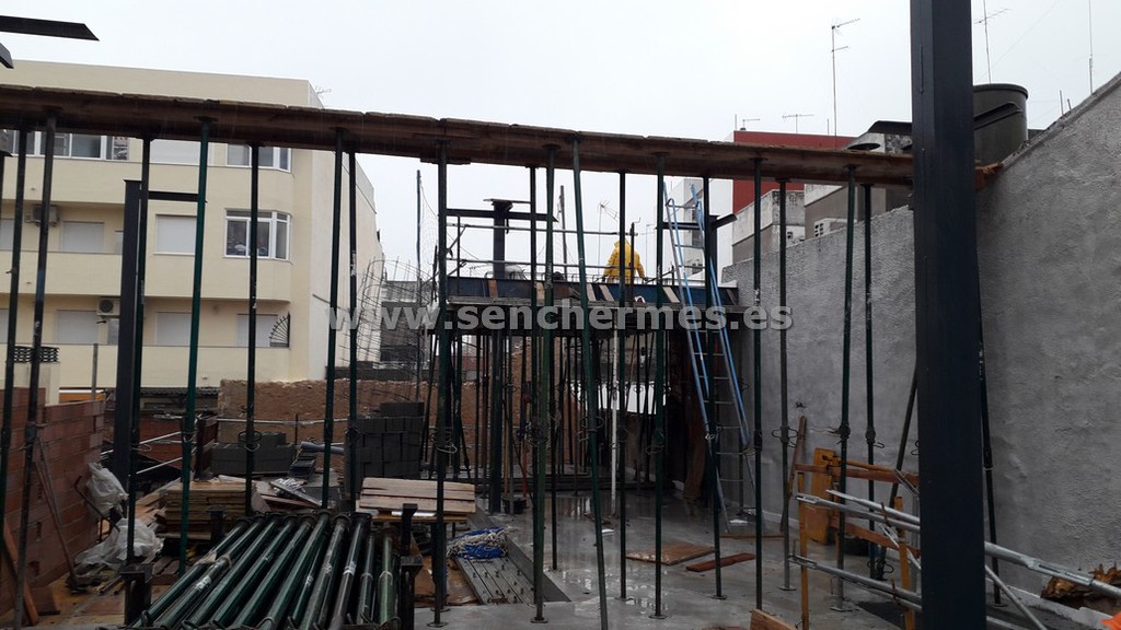 Encofrado de forjado, colocación del sistema caviti y escalera.