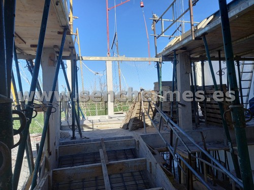 Fases de la ejecución de la estructura, con último forjado inclinado
