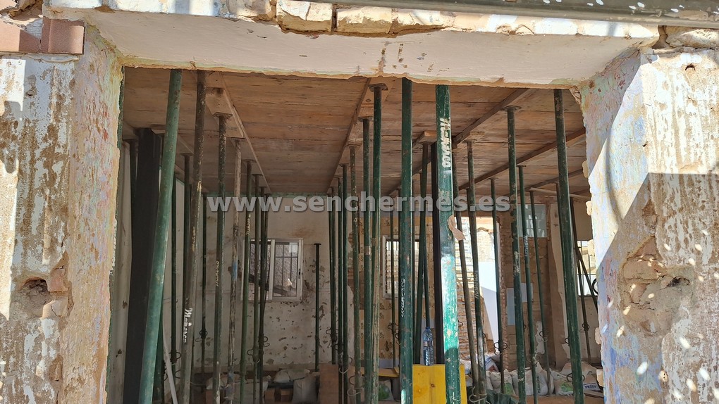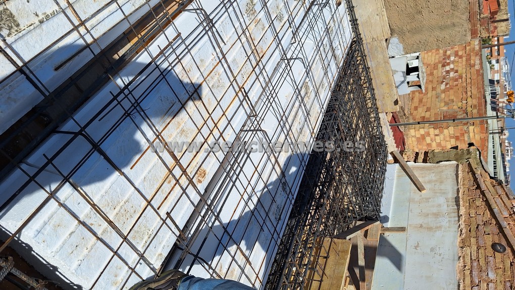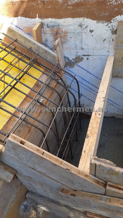 Forjado "in situ" con bovedilla de poliestireno. Estructura metálica en cubierta.