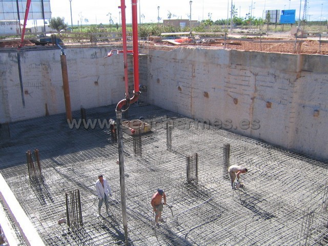 Vistas del hormigonado de la losa de cimentación y de la excavación del muro pantalla